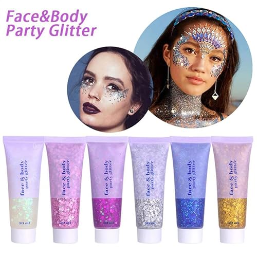 Glitter Body Gel Glitter Corpo,Body Gel Con lustrini,Festival Glitter Makeup Sparkle Glitter per viso,Unghie,Capelli,Corpo Glitter Gel per Musica, Festival, Feste in Maschera,50ml Viola.