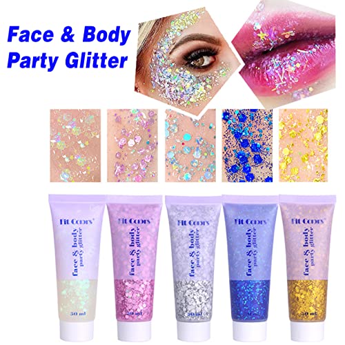Glitter Corpo Gel, Glitter Corpo e Capelli, Brillantini Corpo,Glitter Make Up, Brillantini Adesivi per Viso, Glitter Gel per Viso, Unghie, Occhi, Labbra, Capelli,Corpo, Feste in Maschera, 3 Colori