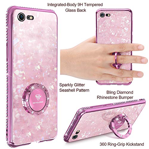 Glitter Cover iPhone 6s Plus, Cover iPhone 6 Plus, [Vetro temperato posteriore] Carino brillante diamantato paraurti strass anello Kickstand Custodia protettiva Telefono per le donne ragazze - Rosa