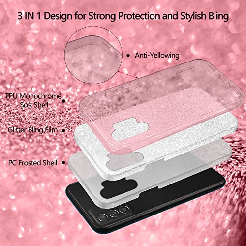 Glitter Cover per Samsung Galaxy A32 5G/ M32 5G, Colorate Crystal Glitter Ultra Sottile Morbido TPU Silicone Trasparente Case Brillantini Protettiva Antiurto Semi Rigida Custodia, Rosa