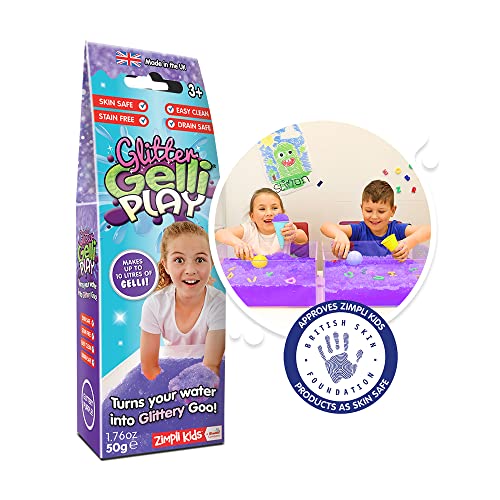 Gioco sicuro al 100% - Glitter Gelli Play è sicuro sulla pelle, drenante, facile da pulire e senza macchie. Zimpli Kids utilizza glitter BIO cosmetici in tutti i nostri prodotti Glittery.