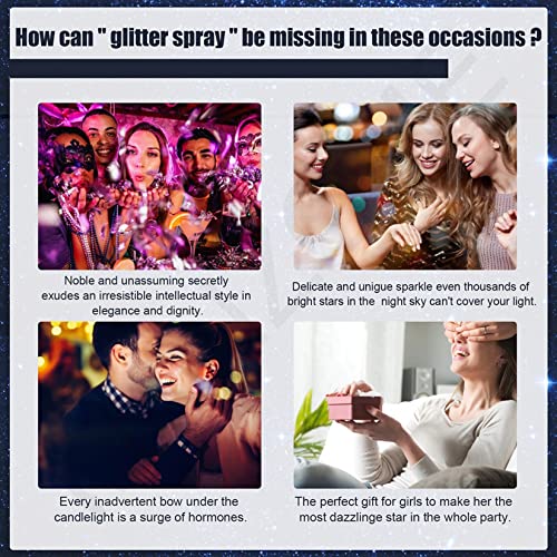 【IMPERMEABILE E LUNGA DURATA】--Dì addio a quei glitter che necessitano di primer/colla, basta spruzzare una piccola quantità di glitter per creare un perfetto effetto luccicante senza sporcarti le mani.MKNZOME glitter spray è impermeabile, di lunga durata e ad asciugatura rapida, può essere brillante a lungo e non devi preoccuparti di una giornata di pioggia o di una festa in piscina.