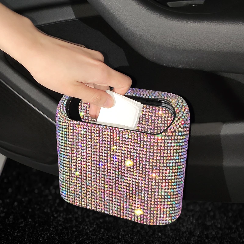 Glitter Car Trash Rubbish Dustbin Can Garbage Dust Box Bling Storage Case Car Trash Bin Auto Accessories