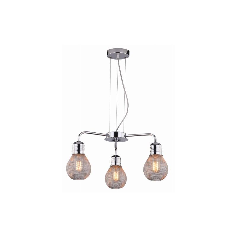 paralume adatto a montare una lampadina di diametro massimo 60 mm, lampadina massima serie A60 Materiale: paralume in metallo, base in metallo Colore base: cromo Altezza: 125 Larghezza: 46 Profondità: 46 Dimensioni (altezza/larghezza/profondità): 125x46x46 Peso (netto): 0,76 LED integrato: No Numero luci sorgenti: 3 Include una sorgente luminosa: No Numero di x sorgenti gambo: 3xE27
