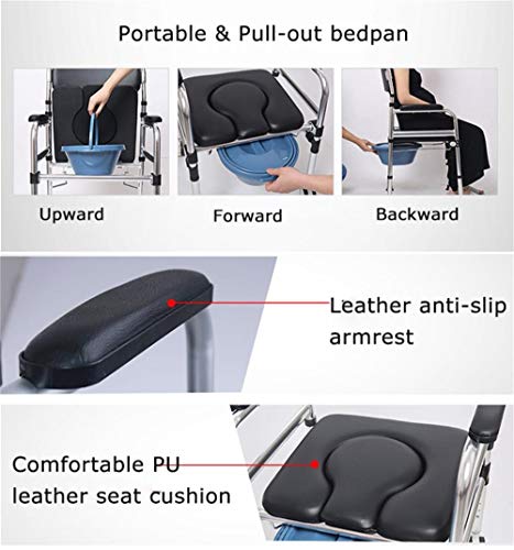 GLJMTY Sedia da Toilette con Ruote per Sedia a rotelle, Sedile per Doccia Imbottito con Ruote e WC Integrato, Sgabello da Bagno per Vasca da Bagno, Anziani, disabili e Mobilità ridotta