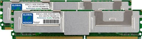 GLOBAL MEMORY Kit di Memoria RAM DDR2 667MHz PC2-5300 240-PIN ECC Completamente buffered DIMM (FBDIMM) da 8 GB (2 x 4 GB) per Server/Workstation/schede Madri (Kit di 4 Classi)