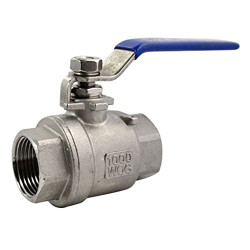 GlobalMa - valvola a sfera a passaggio totale, in linea, in acciaio INOX 316, femmina, con maniglia a leva in vinile di colore blu, WOG1000