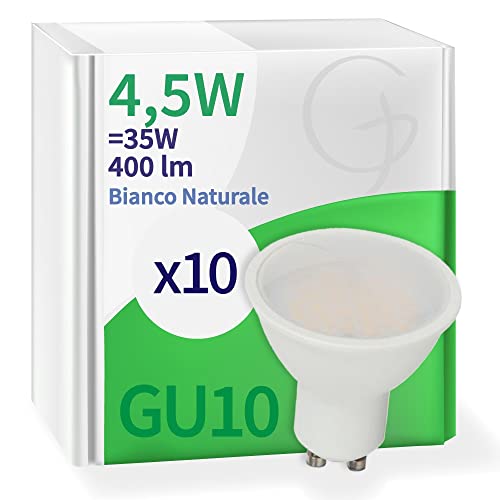 Globatek 10x Lampadine LED GU10 4,5W Opaca (400 lumen equivalenti a 35W) - Forma: Faretto - Bianco Naturale 4000K - Fascio Luminoso 100°