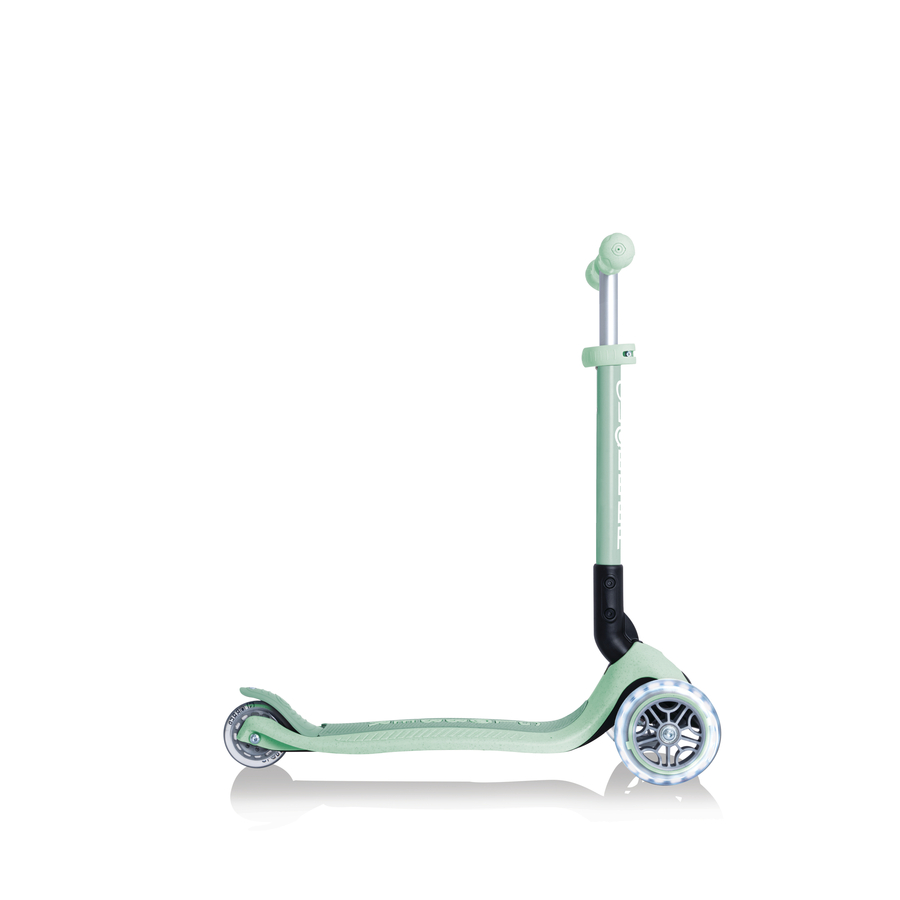 Dettagli del prodotto: Età: da 2 a 6 anni tiger di alta qualità per bambini scoot con 3 ruote e meccanismo pieghevole brevettato Modalità trolley per un facile trasporto Ruote in PU fuso Ruote anteriori 120 mm, ruota posteriore 80 mm Cuscinetti a sfera ABEC 5 Ruote anteriori con luci a LED senza batteria (tecnologia a dinamo) Freno a frizione della ruota posteriore ottimizzato ed extra largo con protezione dei raggi Blocco dello sterzo brevettato attivabile e disattivabile Impugnature ergonomiche in TPR Manubrio in alluminio colorato Regolazione dell'altezza in 3 posizioni 54-68 cm Sgancio rapido e blocco di sicurezza inclusi Piano di calpestio extra profondo e rinforzato con superficie di calpestio antiscivolo a 2 colori Carico massimo: 50 kg Dimensioni e peso: Dimensioni da montato (lunghezza x larghezza x altezza): 56 x 28 x 68 cm Peso: 3,2 kg Materiale e cura: Materiale: plastica riciclata (GRS), alluminio Ruote: PU