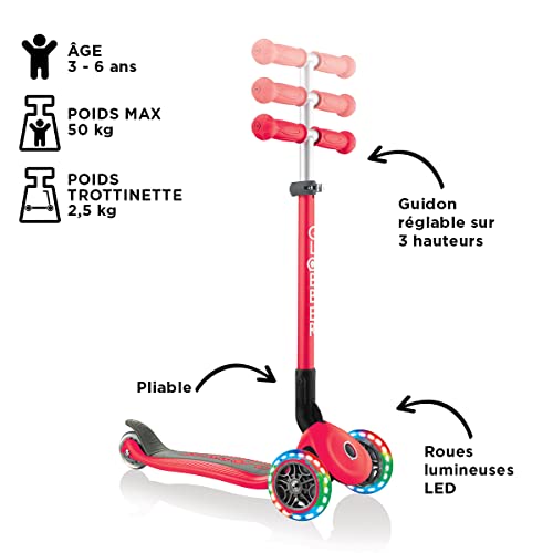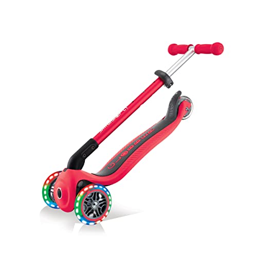 Globber - PRIMO FOLDABLE LIGHTS - Monopattino pieghevole e illuminato a 3 ruote per bambini dai 3 ai 7 anni +, Rosso