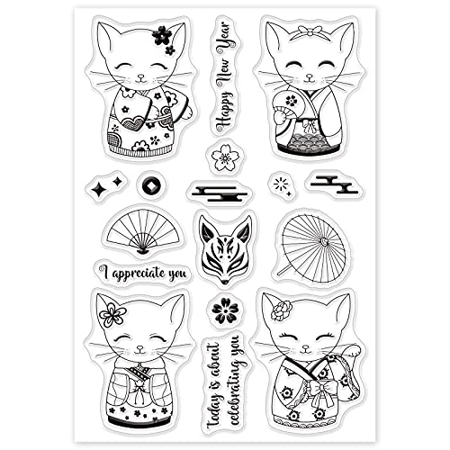 GLOBLELAND Animali Timbri Trasparenti Sigillo Gatto in kimono Timbri Journaling in Silicone Trasparente per la Creazione di Biglietti e Decorazioni per Scrapbooking