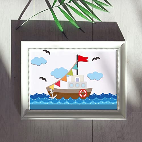 Tema della barca a vela: 1 pezzo di fustellatura della barca a vela, gabbiano, modelli di nuvole e onde, adatto per la creazione di biglietti e perfetto per qualsiasi decorazione su carta. Su 9x11.4 cm.
