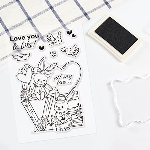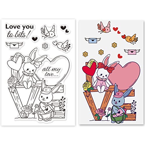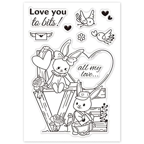 Timbri in silicone per conigli: timbri trasparenti da 1 foglio con simpatici motivi a forma di coniglio e uccello, adatto per la creazione di biglietti e la decorazione di album di ritagli. Ogni foglio misura circa 16x11 cm,6.3x4.3 pollici.