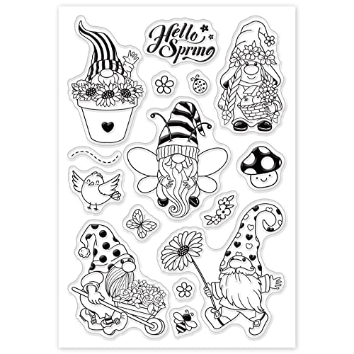 GLOBLELAND Timbro Gnomo Timbri Trasparenti Sigillo a Tema Primaverile Timbri Journaling in Silicone Trasparente per la Creazione di Biglietti e Decorazioni per Scrapbooking