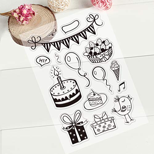 GLOBLELAND Torte di compleanno Modello regalo Timbro trasparente Timbro in silicone Timbri trasparenti Gomma per fabbricazione di carte Decorazione Scrapbooking fai da te