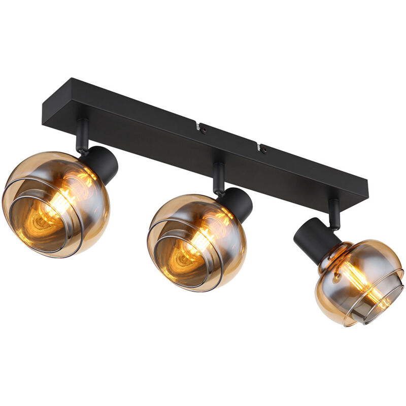 Scopri l'affascinante faretto con prese 3xE14! Con il suo alloggiamento in metallo nero opaco e gli esclusivi colori del vetro color ambra e fumo, questo faretto crea un'atmosfera speciale. Con dimensioni di 410x105x135mm, si adatta perfettamente a qualsiasi concetto di stanza. La presa E14 consente di determinare il colore della luce e la luminosità fino a una potenza massima di 40 watt. Crea un'illuminazione piacevole e prepara sapientemente la scena per i tuoi spazi abitativi.