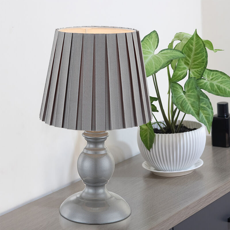 Descrizione Lampada da tavolo classica per il soggiorno. Questa lampada da tavolo rotonda colpisce per il suo design semplice, che la rende integrabile in qualsiasi spazio abitativo. Nella lampada è possibile inserire una lampadina con potenza fino a 40 Watt e attacco E14 per illuminare in modo ottimale l'area prescelta. La lampada non è inclusa nella fornitura. Lampada dettagli • Tipo di lampada: lampada da tavolo • Materiale: plastica grigia • Paralume: 100% poliestere • Interruttore • Grado di protezione: IP20 • Diametro x altezza in cm: 17x28 • Attacco: 1x E14 • Lampadine incluse: no • Potenza lampada: 1x massimo 40 W • Alimentazione: 230 V, 50-60 Hz