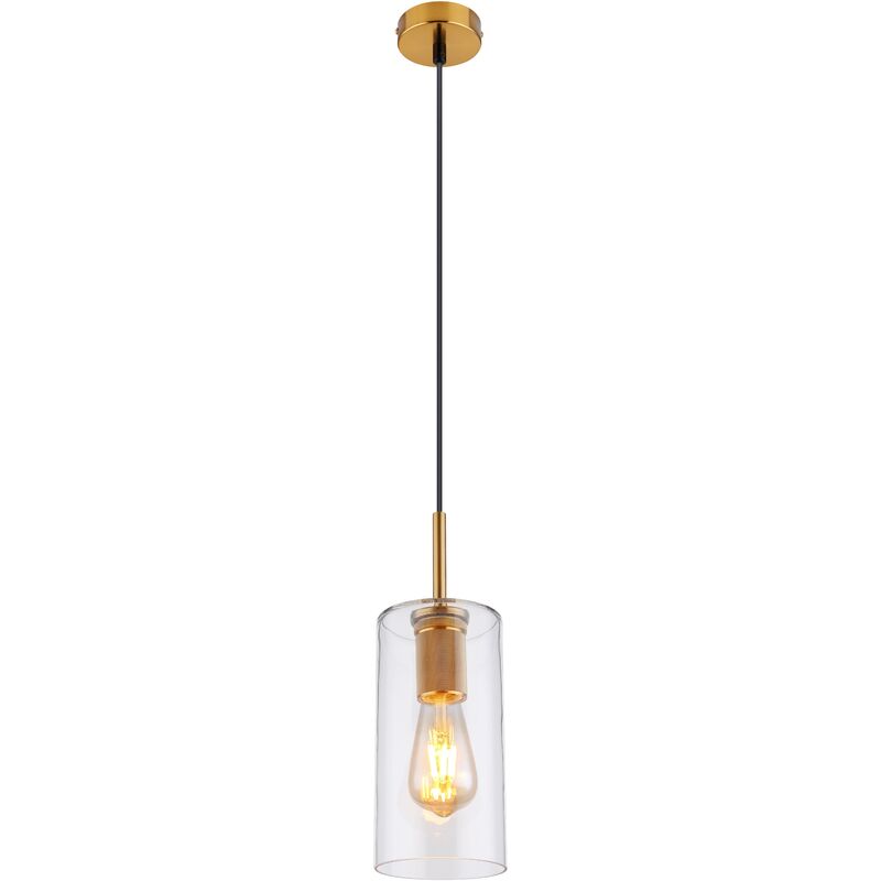 Lampada a sospensione GLOBO ADARA, lampadina NON inclusa, GLB 15460H Lampada a sospensione GLOBO serie Adara dall'accattivante design in metallo color ottone e vetro trasparente. Il portalampada in vetro cilindrico (ø 12 cm) pende da 1,2 m dal soffitto ed è dotato di attacco E27. Caratteristiche tecniche: Altezza: 1200 mm. Diametro: 120 mm. Materiale: metallo, vetro. Colore: satinato, trasparente. Diametro paralume: 110 mm. lampadina NON inclusa. consumo energetico: max 60 W. Tensione: 230 Volt. Grado di protezione: IP20. Classe di protezione: 2. Tipo: Lampada a sospensione Materiale: Vetro Tecnologia di illuminazione: E27 Colore: Rosso Stile: Moderno