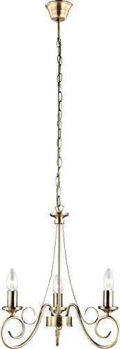 lampada a sospensione in ottone antico, escl. 3 x E14 40 W