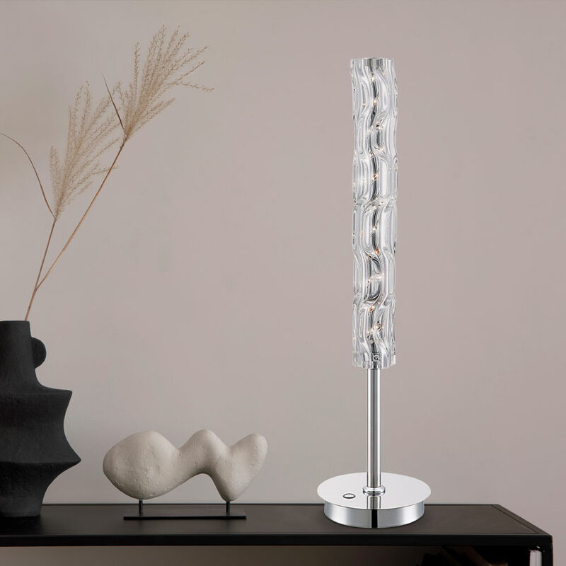 Descrizione Questa lampada da tavolo in cromo e vetro attira davvero l'attenzione grazie alla sua forma. Grazie al dimmer tattile integrato, la luminosità della lampada può essere regolata toccandola nel punto designato. Il LED da 8 Watt in dotazione con 480 lumen ha una temperatura di colore di 4000 Kelvin, che corrisponde a un colore della luce bianco neutro. La sorgente luminosa a LED è installata in modo permanente nella lampada. Lampada dettagli • Tipo di lampada: lampada da tavolo • Materiale: cromo • Paralume: tubo di vetro intrecciato trasparente • Forma: 1 tubo dritto • Dimmer touch • Diametro x altezza in cm: 15x60 • Peso: 1,98 kg • Sorgente luminosa: LED • Lampadine incluse: sì (installate in modo permanente) • Sorgente luminosa: 8 watt • Flusso luminoso: 480 lumen • Colore luce: bianco neutro • Voltaggio operativo: 24V, 50-60Hz Dettagli lampadine • Base: LED • Flusso luminoso: 480lm (lumen) • Consumo energetico: 8 kWh/1000h • Temperatura colore: 4000K (Kelvin) • Consumo