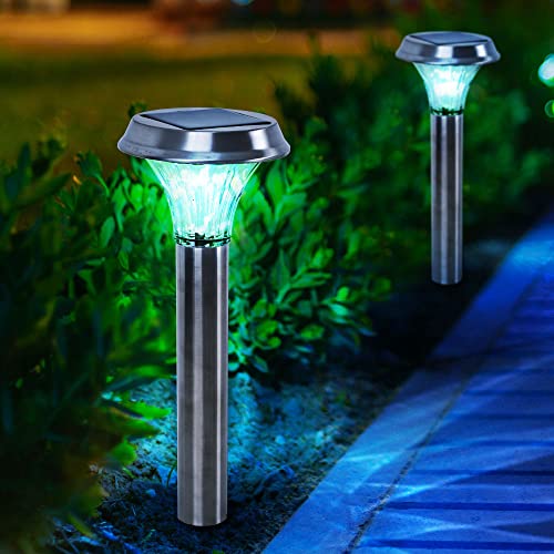 Globo Lampade solari a picchetto a luce solare in acciaio inossidabile per la decorazione esterna del giardino solare in argento, vetro trasparente, 1x LED 2Watt, DxH 18x60 cm