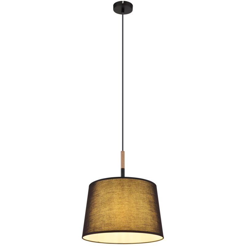 La semplice sospensione della serie TL ispira con il suo bel design. Da un attacco a soffitto rotondo parte un cavo lungo 1,2 m, con decorazioni in legno, fino a una presa E27 con un paralume in tessuto sagomato (Ø 38 cm) di colore nero. L'attacco E27 consente di determinare il colore e la luminosità della luce fino a una potenza massima di 40 watt. Per la longevità e il risparmio energetico, si consigliano le lampadine a LED.