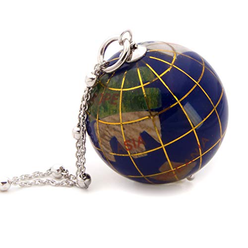 Globo mappamondo ciondolo smaltato con Collana Lunga Donna Ragazza regalo Artistico Portafortuna Argento 925 placcato in oro Bianco