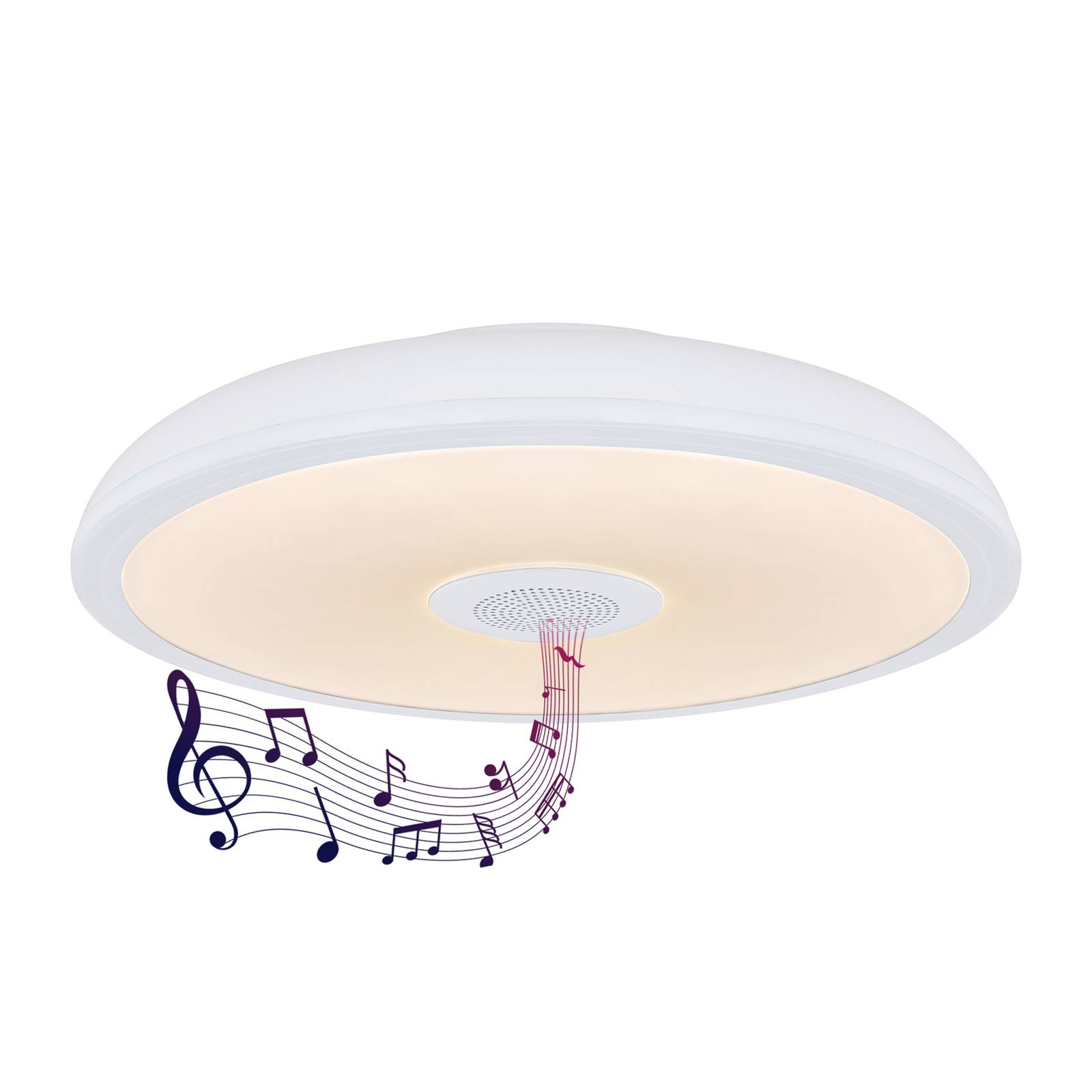 Plafoniera Raffy LED in plastica con pratiche funzioni Raffy ha un design piuttosto semplice in plastica, ma ha diverse funzioni che lo rendono un utile tuttofare. I suoi LED installati in modo permanente si trovano dietro un diffusore color opale e possono essere dimmerati con l'aiuto di un telecomando, controllati in termini di colore della luce (dal bianco caldo alla luce del giorno) e brillare in diversi colori (RGB). Nel suo centro, c'è anche un altoparlante che può essere controllato con l'aiuto del Bluetooth e riprodurre la musica di vostra scelta. La plafoniera Raffy LED è una meravigliosa aggiunta agli interni, si integra facilmente nei mobili con il suo design semplice e genera un ambiente adatto.