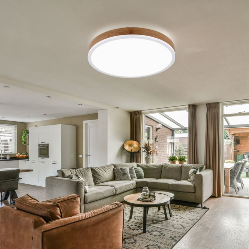Descrizione La plafoniera bianca opaca in metallo con aspetto legno MDF in colore scuro e plastica opalina è una soluzione di illuminazione elegante e funzionale per ogni stanza. La lampada ha un diametro di 45 cm e un'altezza di 8,5 cm. È dotato di una sorgente luminosa LED che consuma 24W a 230V ed eroga un flusso luminoso di 3200 lumen. L'emissione luminosa effettiva è di 1800 lumen con una temperatura di colore bianco caldo di 3000K, che crea un'atmosfera piacevole e accogliente. La plafoniera è facile da installare e può essere facilmente montata su qualsiasi soffitto. Il design elegante dona a qualsiasi stanza un tocco moderno ed elegante, mentre l'aspetto del legno MDF aggiunge un tocco di calore e naturalezza. La sorgente luminosa a LED è installata in modo permanente nella lampada. Lampada dettagli • Tipo di lampada: plafoniera • Materiale: metallo, plastica, MDF • Colore: aspetto legno, bianco, opale • Grado di protezione: IP20 • Classe di protezione: 1 • Forma: rotonda