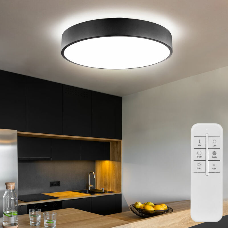 Descrizione Questa plafoniera nera opaca WISS (Ø 40 cm), con una cornice in plastica, attira l'attenzione per le tue quattro pareti. Il vetro in plastica bianca fa risplendere la tua stanza con una luce fino a 1350 lumen. A seconda dell'umore, la luce può essere facilmente regolata da bianco caldo 3000K a freddo 6000K utilizzando il telecomando. Questa lampada da interni colpisce per la sua versatilità. Ha un cambia colore e la possibilità di fissare i colori. Grazie al suo fascino neutro, questa lampada può essere utilizzata universalmente in diversi ambienti della casa. Una sorgente luminosa a LED è installata in modo permanente nella lampada. Lampada dettagli • Tipo di lampada: plafoniera • Materiale: metallo, nero opaco • Paralume: plastica bianca • Funzione di memoria • dimmerabile • Controllo remoto • Circuito CCT (3000-6000K) • I colori possono essere fissi • Grado di protezione: IP20 • Diametro x altezza in cm: 40 x 10,5 • Sorgente luminosa: 1x LED • Lampadine incluse: sì