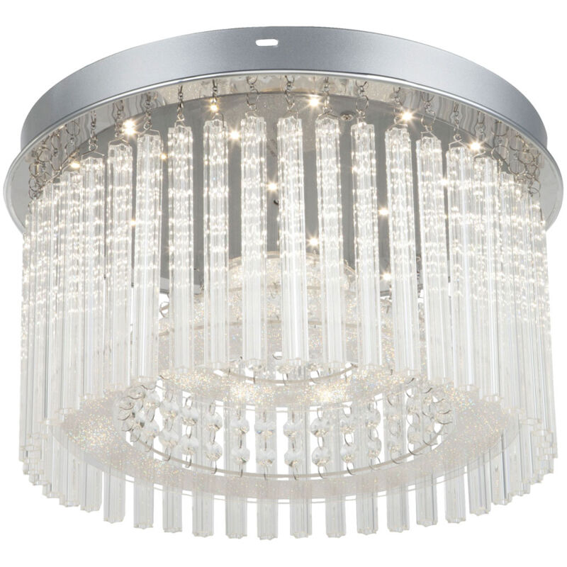 Descrizione La plafoniera rotonda è una parte essenziale dell'illuminazione del soggiorno. Con questa lampada il vostro spazio abitativo come la cucina, il soggiorno, la cameretta dei bambini sarà perfettamente illuminato. Anche il design ti convincerà. Grazie al corpo elegante ma classico, la plafoniera può essere utilizzata universalmente in ogni stanza. Rispetto alle luci “normali”, i faretti LED consumano solo una quantità minima di corrente e hanno un consumo ancora più basso rispetto alle luci a risparmio energetico. In questo modo proteggi l'ambiente e il tuo portafoglio. Lampadina LED da 18 Watt di alta qualità e a risparmio energetico inclusa! Dettagli della lampada • Tipo di lampada: plafoniera • Materiale: cromo, acrilico • Paralume: aste in vetro, pendenti in cristallo • Dimensioni PxH in cm: 37x23 • Presa: 1x LED • Lampadine incluse: sì • Sorgente luminosa: 1x 18 watt • Flusso luminoso: 1630 lumen • Colore luce: bianco neutro • Alimentazione: 230 voltDettagli Lampadine a