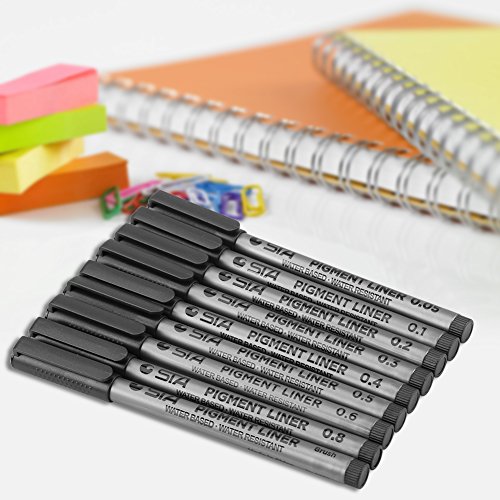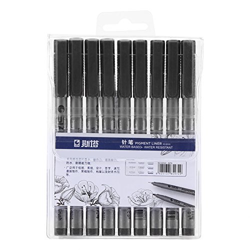 GLOGLOW 9 Pezzi Diversi Formati di Punta Set pennelli a Base d'Acqua, Smooth Drawing Writing Sketching Penne a Inchiostro Nero Pennarelli