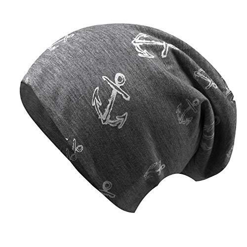 Gloop Cappello unisex Slouch classico in tinta unita mimetico con stella o ancora autunno, inverno e primavera Grigio scuro 17103a1. Taglia unica
