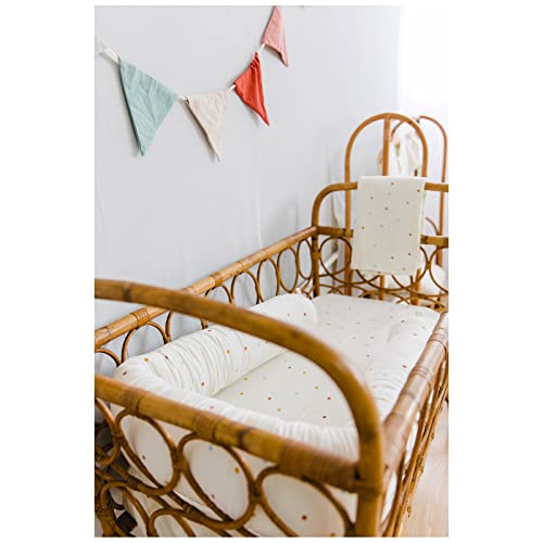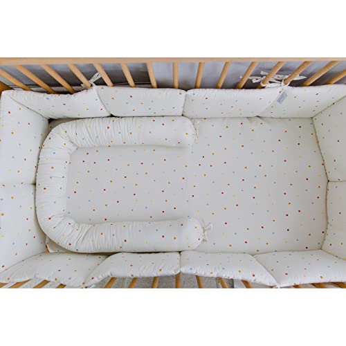 Gloop GONR034 Riduttore per lettino bambini in cotone organico, salsicciotto, prodotto in Portogallo, 160 cm, bianco con pois