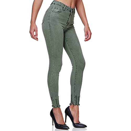 Gloop Jeans da donna elasticizzati, pantaloni skinny Fit, Jegging SkinnyJeans elasticizzati, push up a vita alta, Fendt verde, S