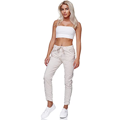 Gloop Pantaloni da donna Boyfriend Jogger Pants 7/8 Capri Pants Made in Italy, beige., XXL