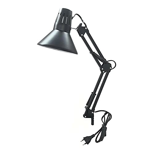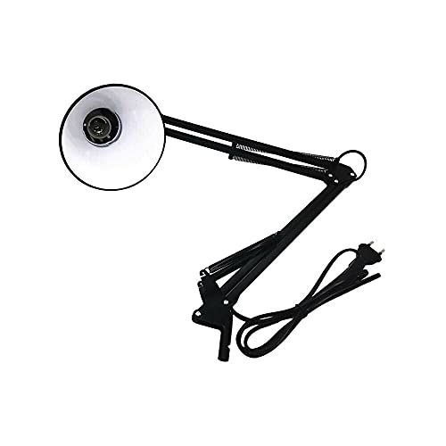 Dotata di braccio superiore pieghevole e al diffusore di luce snodabile ed è possibile orientare la luce come meglio si desidera. Paralume orientabile e regolabile verso alto o basso, la pesante base garantisce stabilità alla lampada. Lunghezza cavo di alimentazione 146 cm, interruttore ON/OFF sul cavo. Specifiche: Alimentazione: 220/240v 50Hz