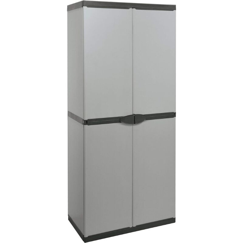QUALITA' CERTIFICATA MADE IN ITALY: GLOUPIE Armadio Portascope Da Interno Ed Esterno Alto Con 2 Ante E 3 Ripiani, Linea Joker, Realizzato In Resina PVC E Polipropilene Alveolare Resistente Agli Urti, Ai Graffi E Alle Intemperie In Combo Di Colorazione Grigio E Nero, Lunghezza 68 Cm x Profondità 40 Cm x Altezza 168 Cm, In Kit Di Montaggio Facile Da Assemblare, Modular System Per Ancorarlo Semplicemente Agli Altri Prodotti Della Stessa Linea, Completo Di Chiusura Lucchettabile E Pannello Divisorio DESIGN ELEGANTE E FUNZIONALE PER OGNI AMBIENTE: L'Armadio Portascope Joker Non è Solo Un Semplice Complemento D'Arredo, Ma Un Vero E Proprio Oggetto Di Design Che Si Distingue Per Le Sue Linee Essenziali E Moderne. La Combinazione Di Colore Grigio E Nero Lo Rende Versatile E Adattabile A Qualsiasi Contesto, Sia Interno Che Esterno. Che Sia Collocato In Un Ripostiglio, In Garage, In Cantina O Sul Balcone, Joker Si Integra Perfettamente Con L'Ambiente, Donandogli Un Tocco Di Stile E Raffinatezza