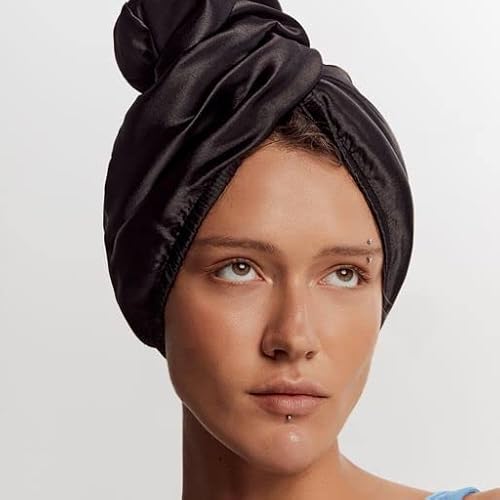GLOV Asciugamani per Capelli a Turbante Cappuccio per Capelli Secchi Super Assorbente Doppio Strato di Raso Vegano e Microfibra Asciugatura Rapida per Capelli | Glamorous Charmeuse (Nero)