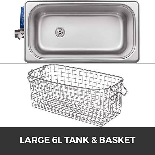 Pulizia sorprendente: potenza a ultrasuoni rinforzata da 40 kHz, ideale per rimuovere olio, cera, macchie in fori, superfici, colonne, ecc. Serbatoio da 6,5 l per raccogliere più prodotti contemporaneamente, ed è silenzioso durante l'uso. Non disturbare mai le altre opere.