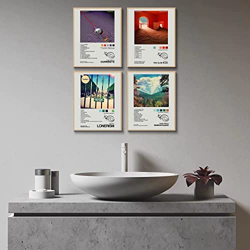 GLRSSN, Set di 4 poster musicali, motivo copertine degli album di Tame Impala, una decorazione artistica da parete per ragazzi, per dormitorio, 20,3 x 25,4 cm, senza cornice