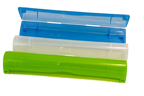Dispenser a rullo in plastica per rotoli di pellicola da 34 cm di lunghezza x 6,5 cm, 5,5 cm in tre colori.