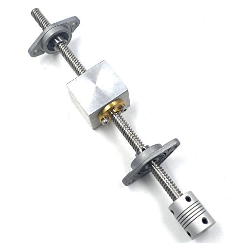 Glvanc, vendita calda 3D Printer guide rail set T8 verticale 8 mm piombo vite + asta D19L25 albero flessibile accoppiamento + 8 mm Pillow Block mounted cuscinetto KFL08 dado + alloggiamento + dado in ottone, set di 6, 300mm Lead Screw Rod, Silver, 6