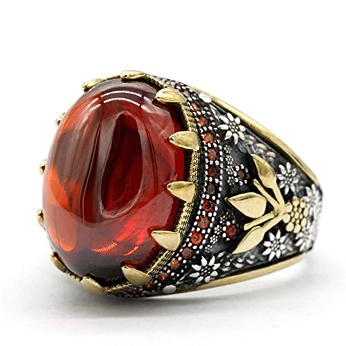 GLYIG Anello in Argento Sterling 925 con Pietre preziose Rosse per Uomo, Anello Turco Fatto a Mano in Pietra di Agata Naturale per Donna, Uomo, Gioielli Vintage Raffinati (Dimensione: 12)