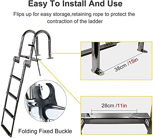 GLZXMQBP Scaletta Bagno Scaletta Barca Inox, Scalette Piscina Pieghevole con Corrimano E Ampia Pedaliera 4 Gradini Ponte Galleggiante per Piscina/Piscina Barca, Ingresso Poppa Marina