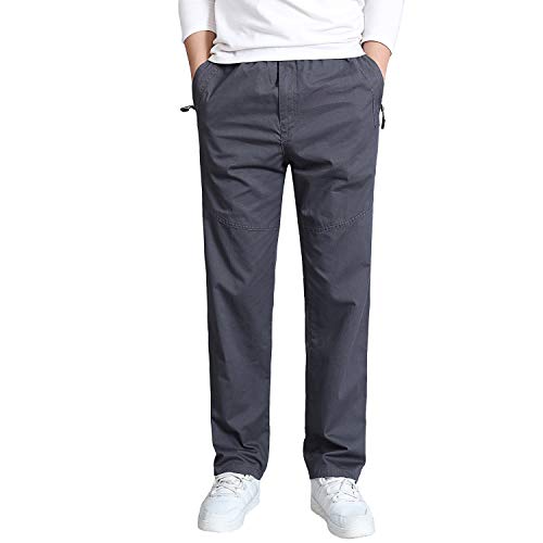 Gmardar Pantaloni Uomo Elegante con Tasche Laterali Zip Elastica Vita Cotone Dritti Larghi Fit Casual Regular Taglie Forti Diversi Colori (Grigio Scuro -Cerniera, 38-42)