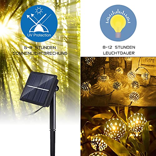 Perché scegliere: 8 modalità di lampeggiamento, batteria da 600 mAh, 5 m, 20 LED, luce bianca calda, forma marocchina in ferro battuto, indice impermeabile IP65.