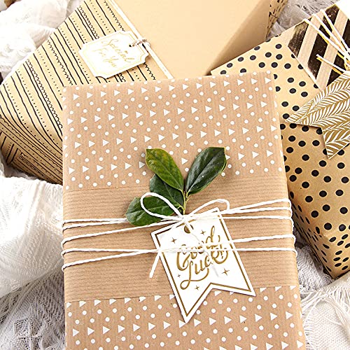 [Comodo] Riceverai 8 fogli di carta kraft con disegni diversi e 2 rotoli di filo di cotone platino. In questo modo non devi preoccuparti di come incartare il tuo regalo. Puoi legare direttamente il regalo con una corda di cotone dorata bianca per fissare il regalo.