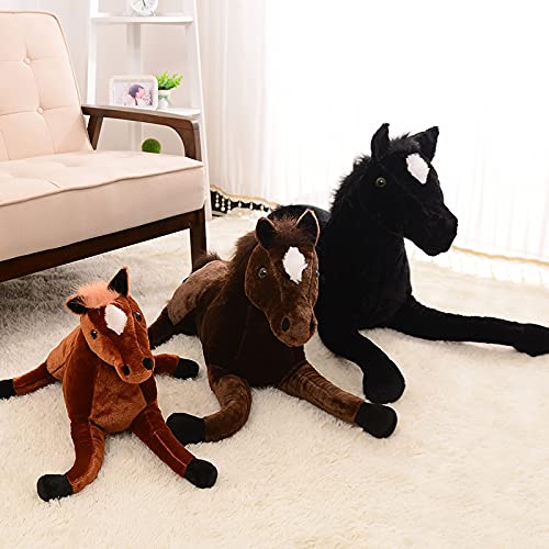GMMAJ Modello di Simulazione Giocattolo di Peluche farcito di Cavallo Nero Giocattolo di Peluche di Cavallo di Bambola di Cavallo Marrone di buona qualità-65cm,Nero
