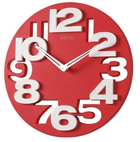 GMMH 3 D - Orologio di Design da Parete 8808 per Cucina Bagno Ufficio Silenzioso (Rosso Bianco)